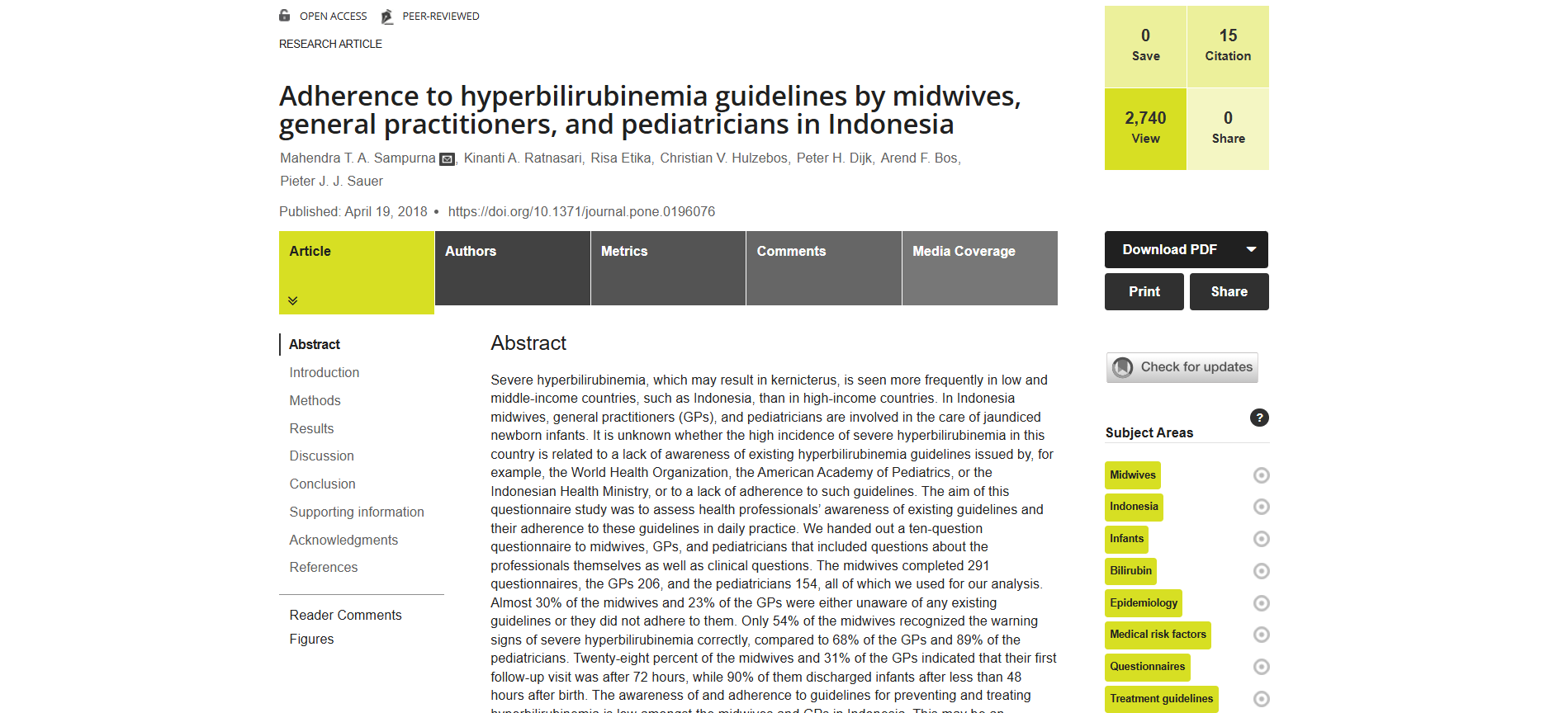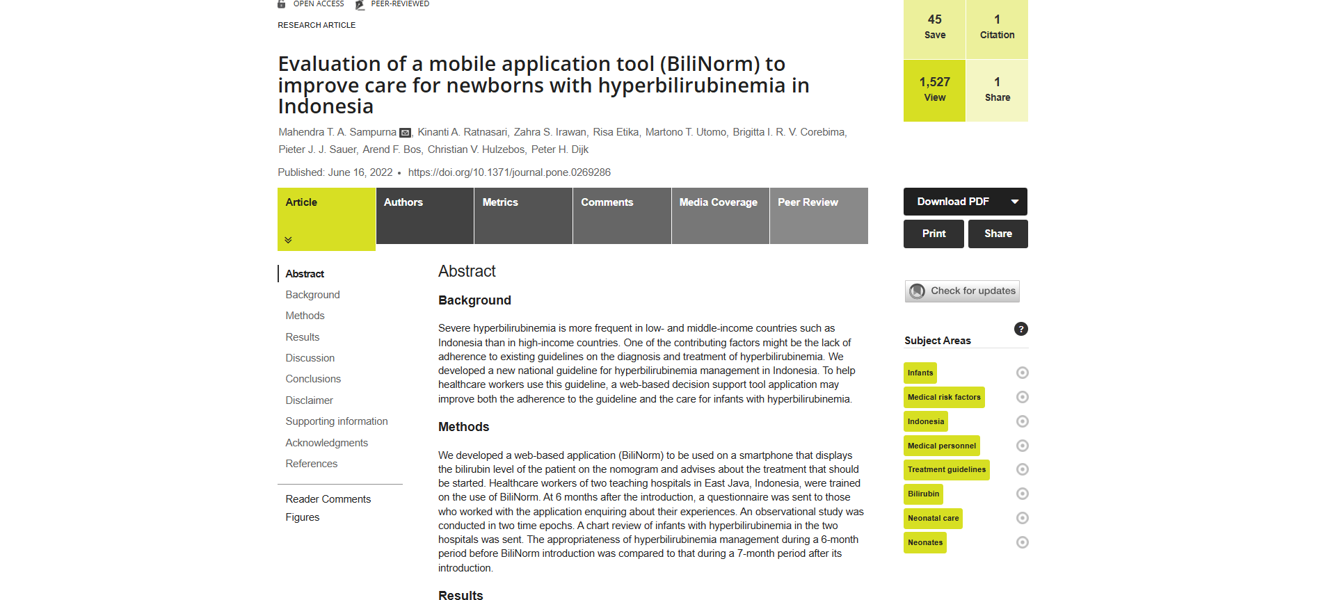 Hiperbilirubinemia berat lebih sering terjadi di negara berpenghasilan rendah dan menengah seperti Indonesia dibandingkan di negara berpenghasilan tinggi. Salah satu faktor penyebabnya kemungkinan adalah kurangnya kepatuhan terhadap pedoman diagnosis dan pengobatan hiperbilirubinemia yang ada. Kami telah mengembangkan pedoman nasional baru untuk penanganan hiperbilirubinemia di Indonesia. Untuk membantu tenaga kesehatan dalam menggunakan pedoman ini, aplikasi alat bantu keputusan berbasis web dapat meningkatkan kepatuhan terhadap pedoman dan perawatan bayi dengan hiperbilirubinemia.