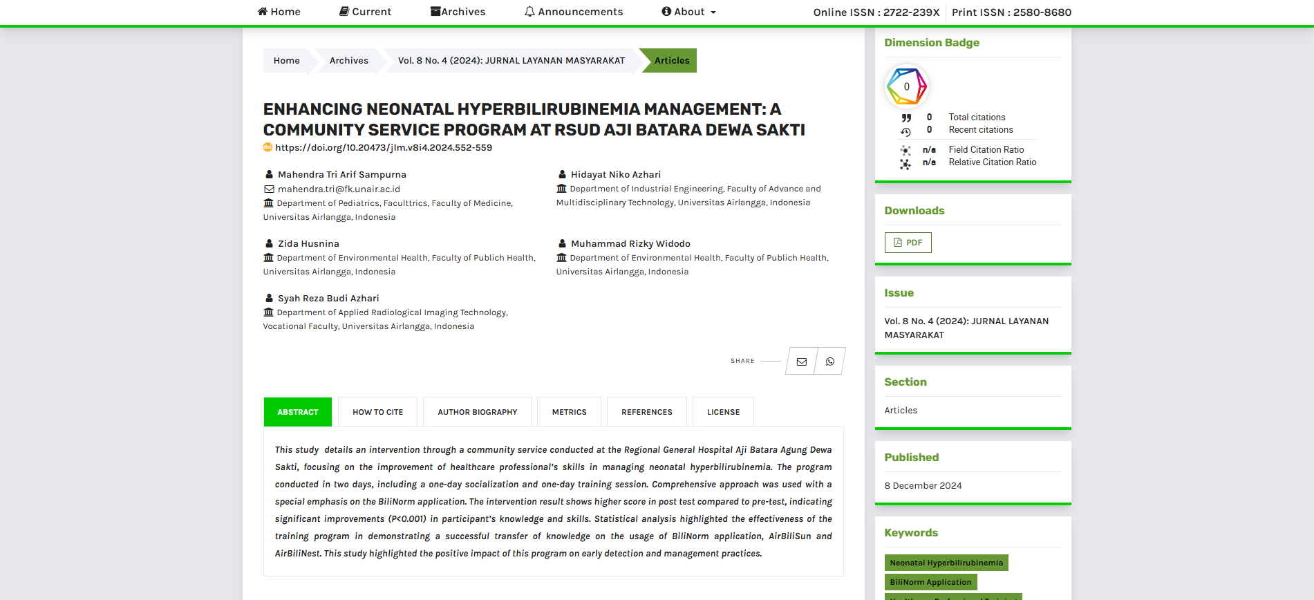 Penelitian ini merinci intervensi melalui pengabdian masyarakat yang dilakukan di Rumah Sakit Umum Daerah Aji Batara Agung Dewa Sakti, dengan fokus pada peningkatan keterampilan tenaga kesehatan dalam menangani hiperbilirubinemia neonatal.